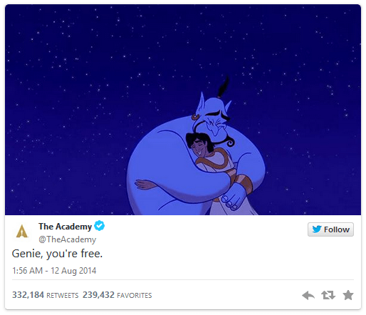Recentemente, a morte do ator norte-americano Robin Williams reacendeu a discussão sobre o tema. No dia 12 de agosto de 2014, The Academy of Motion Picture Arts & Sciences (instituição norte-americana responsável pela premiação do Oscar) publicou no Twitter uma homenagem ao ator com uma foto do gênio da lâmpada do desenho animado Aladdin (Disney), já que Williams dublou a voz do personagem para a língua inglesa. O problema foi a legenda da imagem: “Gênio, você está livre!”. Diversos pesquisadores criticaram a legenda, uma vez que a mensagem aponta indiretamente o suicídio como uma espécie de livramento, uma possibilidade para quem sofre e vive circunstâncias semelhantes às do ator. No site do Laboratório de Pesquisas sobre Comportamento Suicida, liderado pelo professor O’Connor na Universidade de Glasgow, foi publicado um pequeno texto de advertência sobre os riscos envolvidos neste tipo de mensagem. “Quando alguém está em desespero, publicações ou mensagens insensíveis e inapropriadas podem ser desencadeadoras de algo pior para eles, especialmente aqueles que estão em situação mais vulnerável. Por esta razão temos de tomar cuidado ao relatar casos de suicídio”, afirma Rory O’Connor .